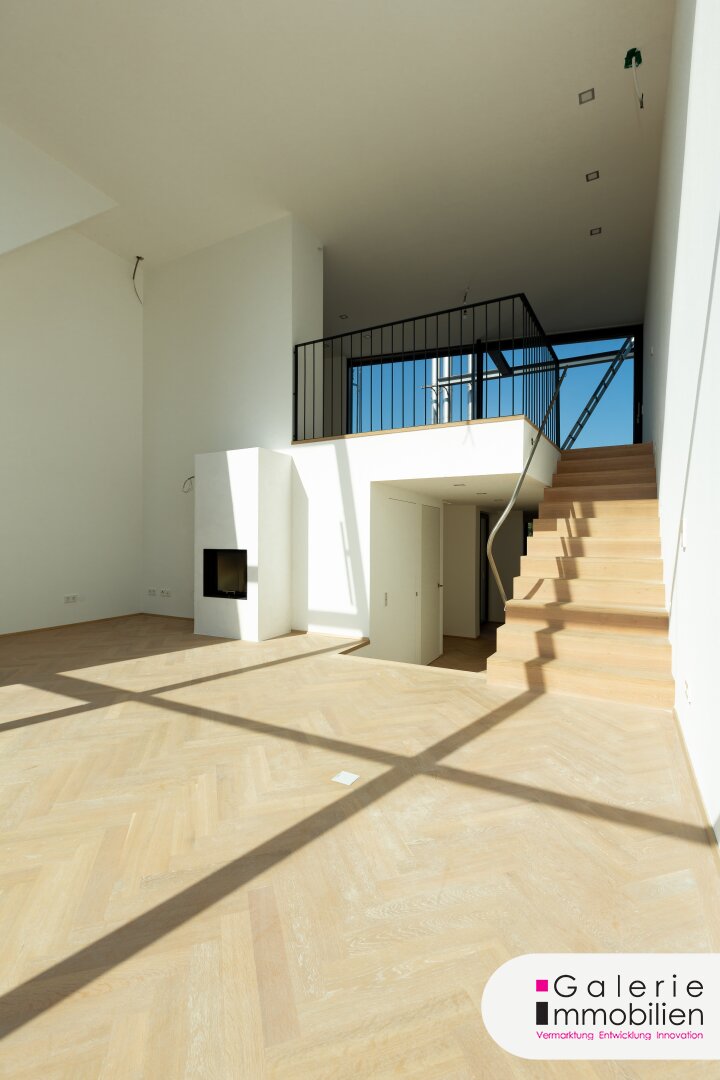 Top 20 ist eine gerade fertig gestellte 113,95m² große Dachgeschosswohnung im 4. und 5. Stock mit großer, westseitiger Terrasse mit Traumblick. Der 31,26m² große Wohnbereich mit den deckenhohen Schrägfenstern und dem spektakulären Blick auf die Türme der Canisius-Kirche, weiters mit dem Aufgang zur 24,27m² großen Wohnküche mit Zugang auf die große Terrasse bildet das absolute Highlight der Wohnung. Selbstverständlich gehört ein offener Kamin zum Wohnbereich.