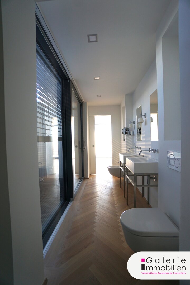 Die exklusive Ausstattung und modernste Technik, sowie die geraden Wände und die Rundum-Sonnenterrassen mit Weitblick zeichnen das besondere Penthouse aus.