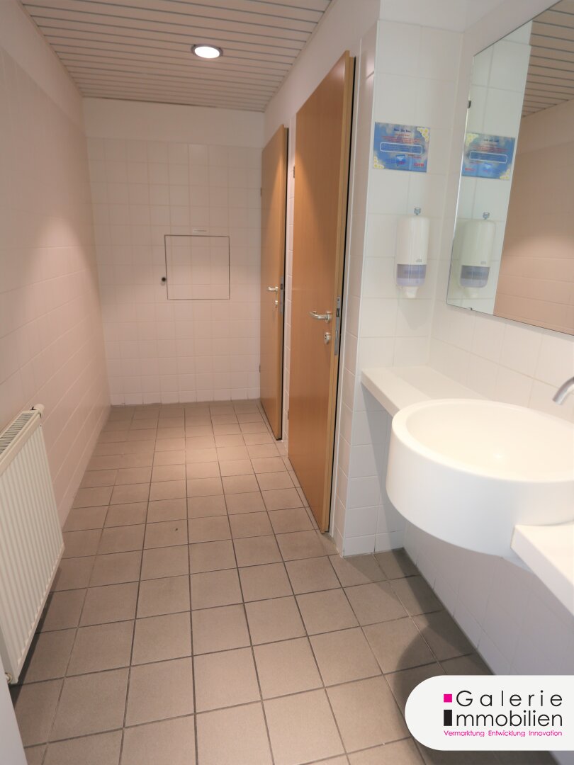 Es stehen Ihnen zusätzlich zu den 5 Büros, dem Besprechungsraum und den 2 Abstellräumen ein großzügiges Foyer, eine Teeküche und 2 getrennte Toilette-Anlagen mit jeweils 2 Toiletten und Waschbecken zur Verfügung. Diese allgemeinen Flächen, die auch der Mieter der rechten Seite der Etage benützen kann, werden anteilig bei der Miete berücksichtigt.