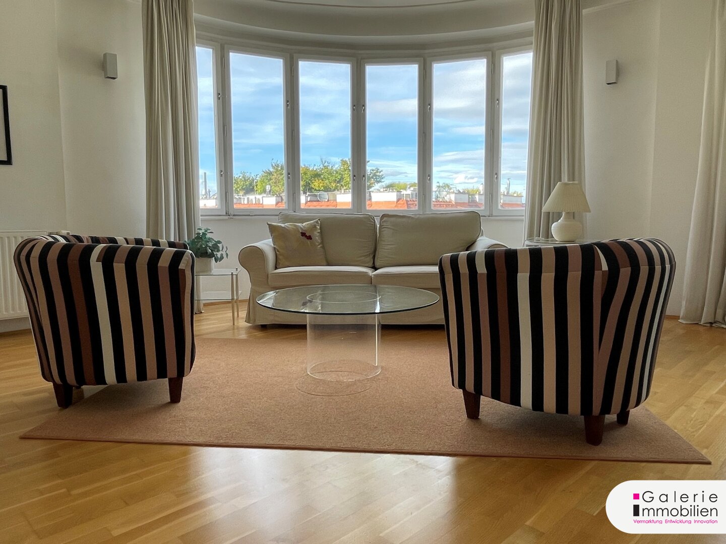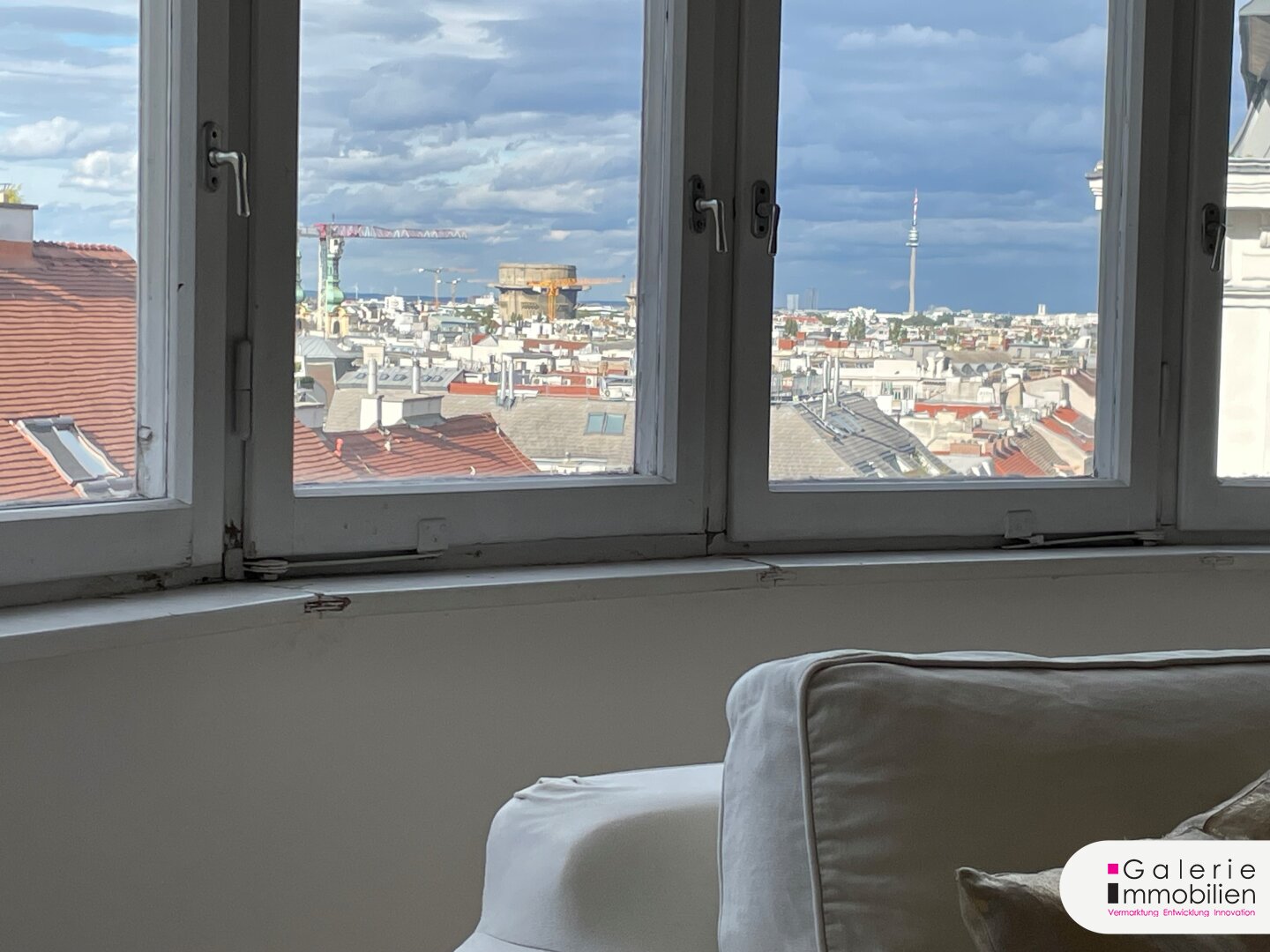 Durch die Nord-Ost-West-Ausrichtung ist dieses Schmuckstück auch an heissen Tagen angenehm temperiert. Der unglaubliche Blick über die Dächer Wiens ist das i-Tüpfelchen dieses Domizils.