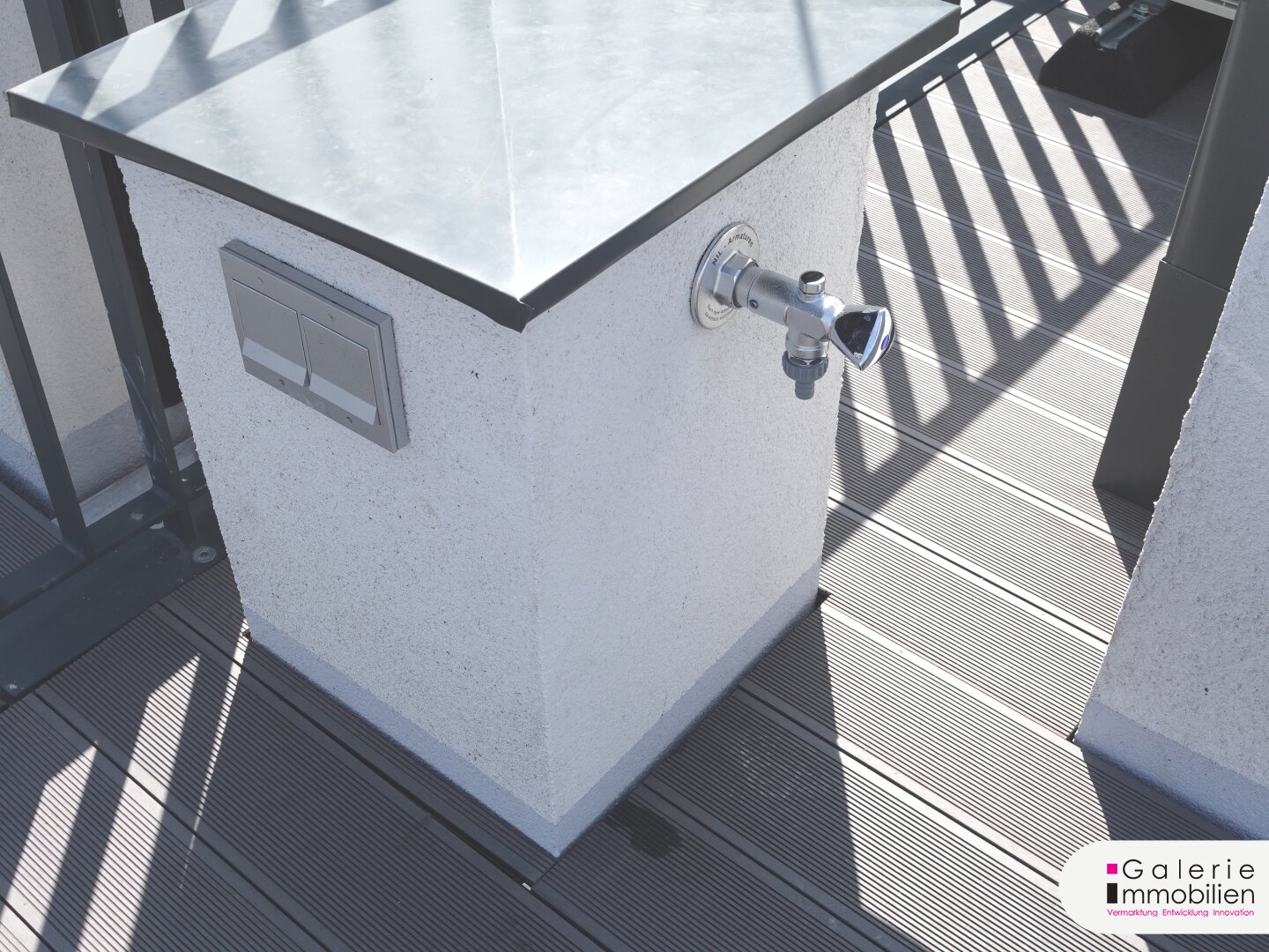 Alle Terrassen verfügen über eine Beleuchtung, Wasseranschluss und Steckdose/n. Die beheizte Wohnfläche beträgt ca. 72m², die gesamte, begehbare Fläche dieser Wohnung inklusive Terrasse auf Wohnebene und der Dachterrasse beträgt ca. 105m²!