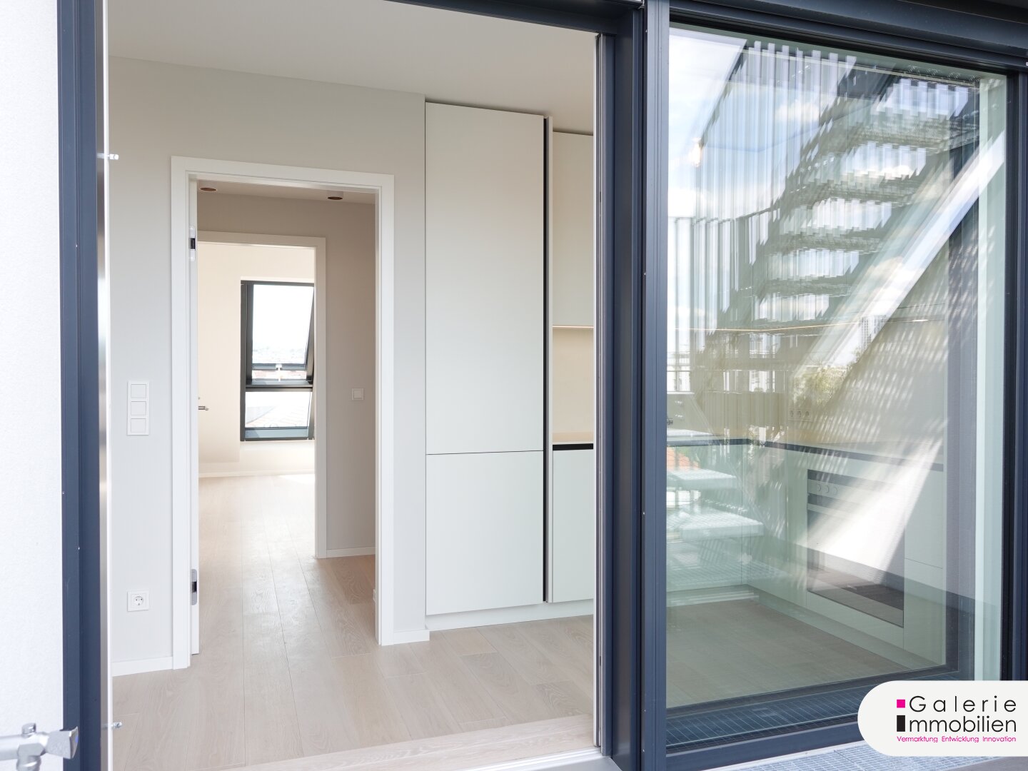 Im Dachgeschoss mit Lift barrierefrei gelegen, verfügt diese mit viel Liebe zum Detail geplante, helle und ruhige Wohnung über einen Vorraum mit Garderoben- und Staubereich, ein Wohn-Esszimmer mit Küchenbereich, ein Schlafzimmer mit Garderobennische, eine moderne Badewelt mit separater Waschmaschinennische inklusive Falttür im Badkorridor, ein separates WC mit Handwaschbecken, eine Terrasse (zugäglich von der Wohnküche) mit ca. 9m² sowie eine spektakuläre Dachterrasse mit eigenem Zugang von der ersten Terrasse und Sitzgelegenheit mit ca. 24m² und Rundumblick auf Wien!